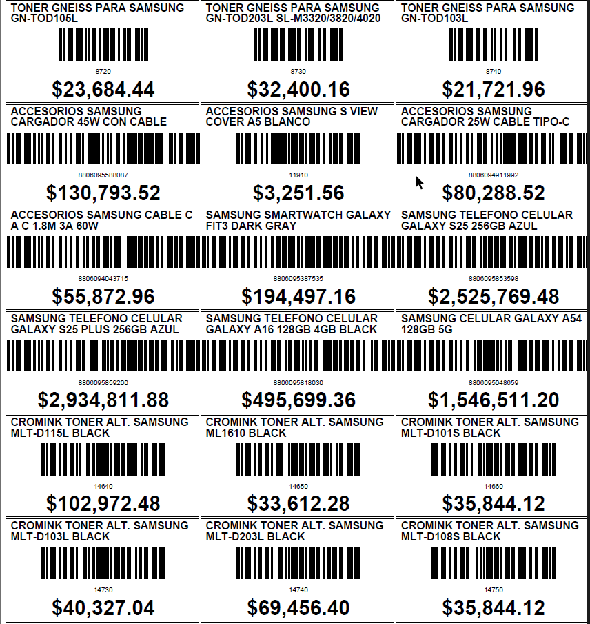 Control automático al facturar. Listas de precios, categorías y alertas de stock bajo. 🏷️ Etiquetas automáticas Generá e imprimí etiquetas directamente desde el sistema